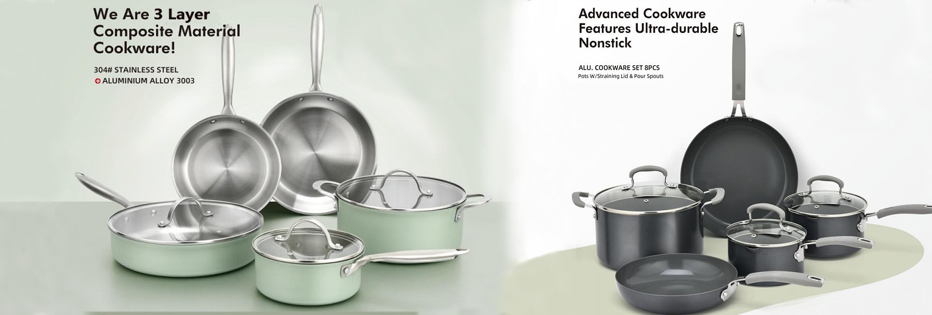 Juego de utensilios de cocina triples de acero inoxidable 2025, ollas y sartenes de Metal duraderas con cubierta de vidrio pulido con espejo, mango conectado con remaches
